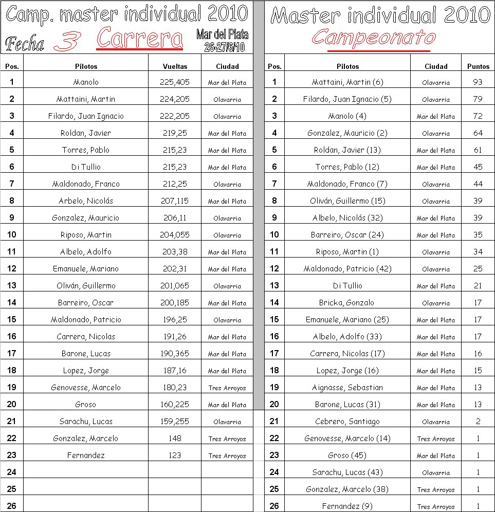 • Resultados y Campeonato Master Individual